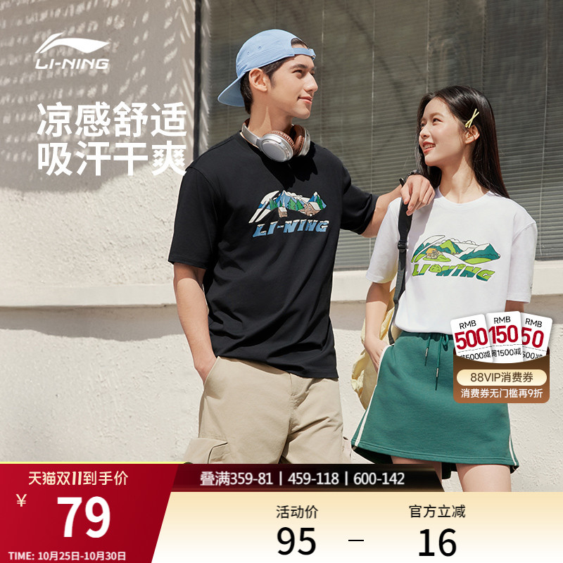 李宁冰丝短袖男2025新款夏季半袖情侣上衣宽松体恤白色运动T恤女