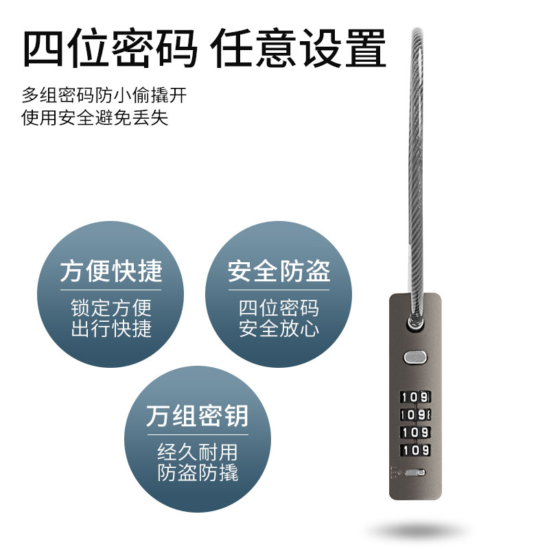 密码锁头盔自行车防盗钢丝挂锁电动车车筐柜子宿舍链条小型安全