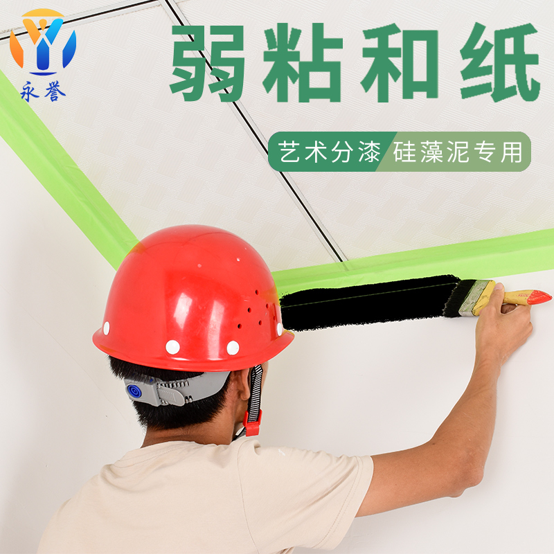 永誉不伤墙弱粘性美纹纸胶带绿色低粘性皱纹胶纸膜装修喷漆遮蔽乳胶漆分色纸贴墙面无痕美术生专用和纸宽批发