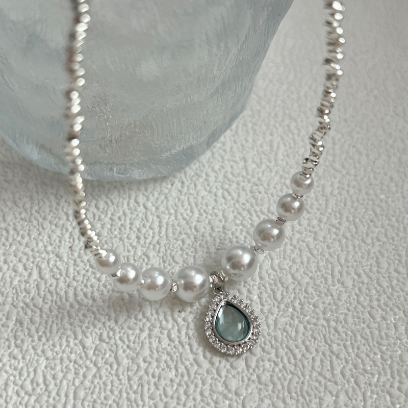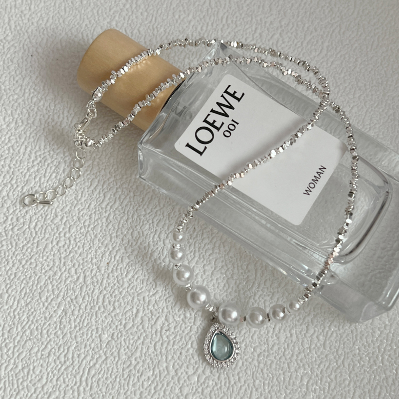 KANSAI蓝水滴珍珠项链配饰女秋冬碎银子轻奢小众锁骨链高级感饰品
