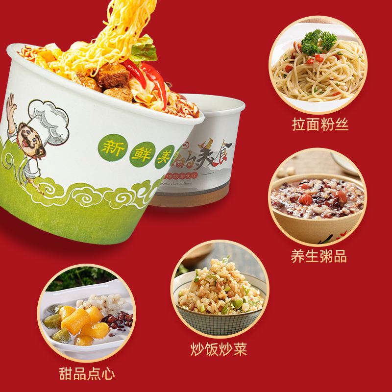 程圆商用一次性纸碗加厚圆形外卖小吃打包餐具饭盒带盖餐盒汤碗