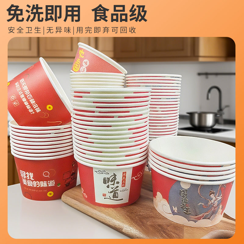 纸碗一次性碗筷食品级家用打包盒加厚打包餐盒饭盒泡面碗整箱批发