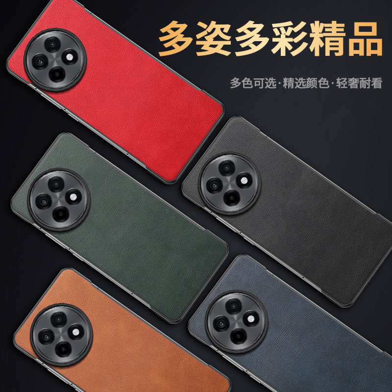 素皮无边框镂空透气散热适用一加Ace5 Pro手机壳新款高级感素皮轻薄原机手感简约时尚抗震防摔奢华皮质防指纹