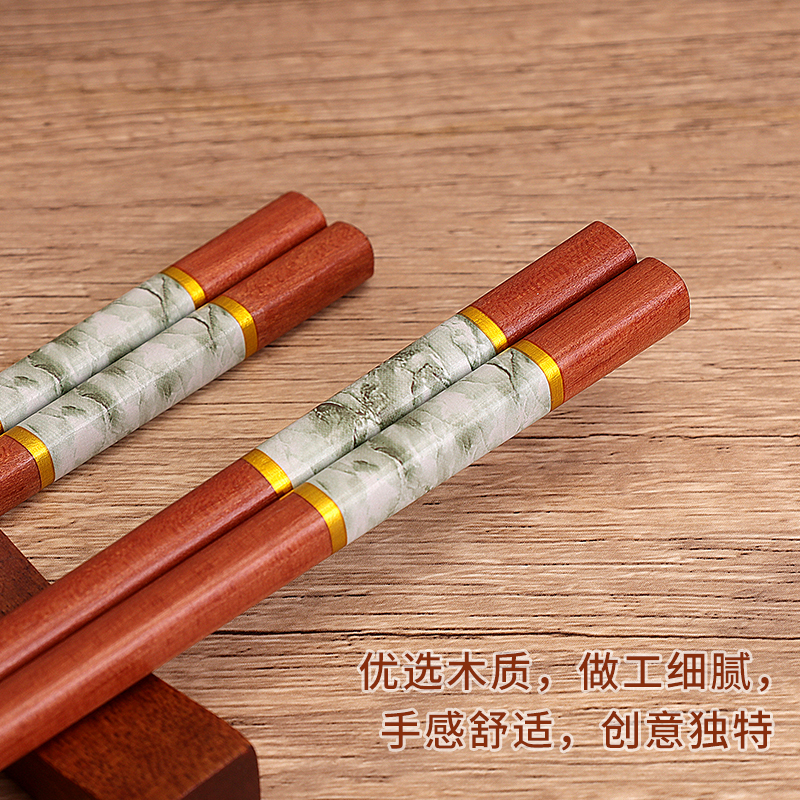 筷子家用实木高档餐具鸡翅木筷子无漆无蜡红檀木快子防滑耐高温