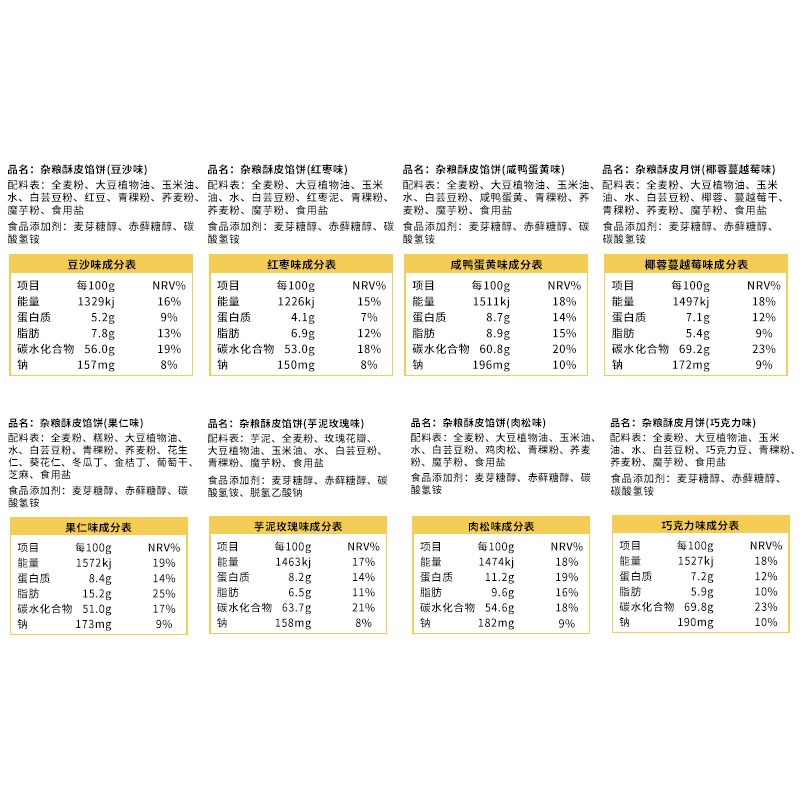 八千步全麦月饼中秋伍仁老式肉松蛋黄60g/枚豆沙巧克力荞麦传统