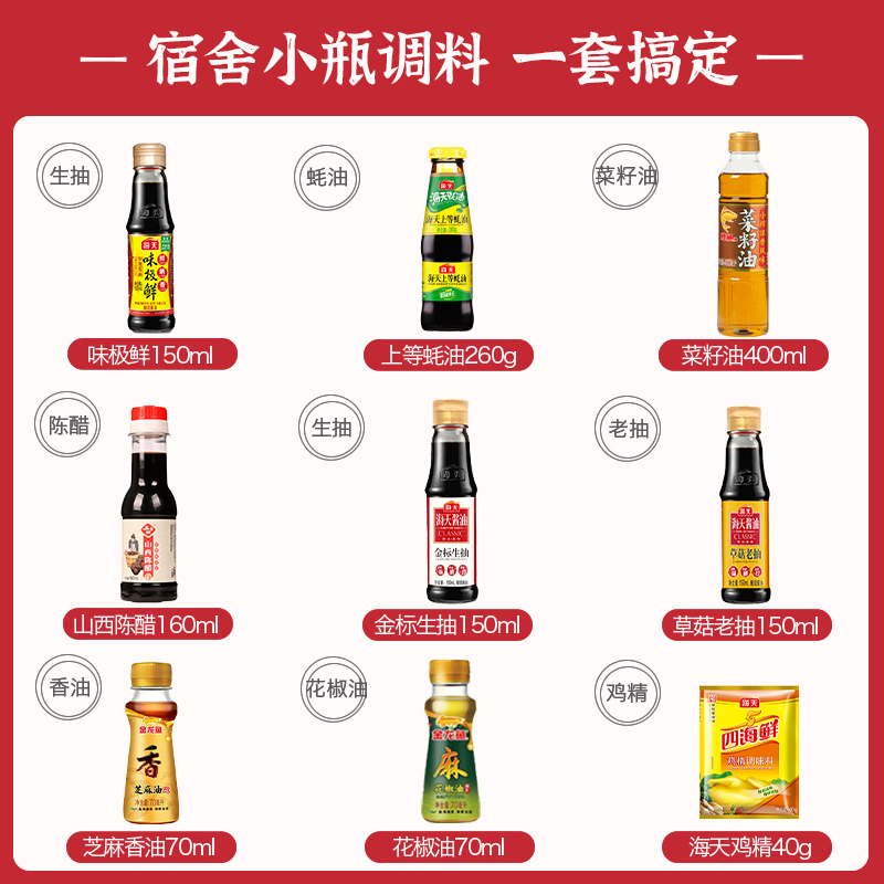 小瓶调料组合套装宿舍野外露营酱油醋生抽蚝油盐味极鲜料酒