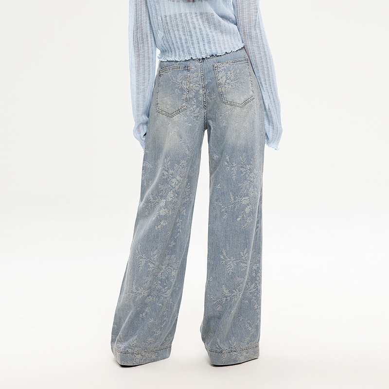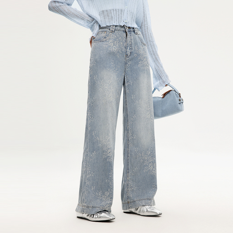 记忆的起点牛仔常阔腿裤高腰休闲直筒裤女2025夏季新款69AX25187