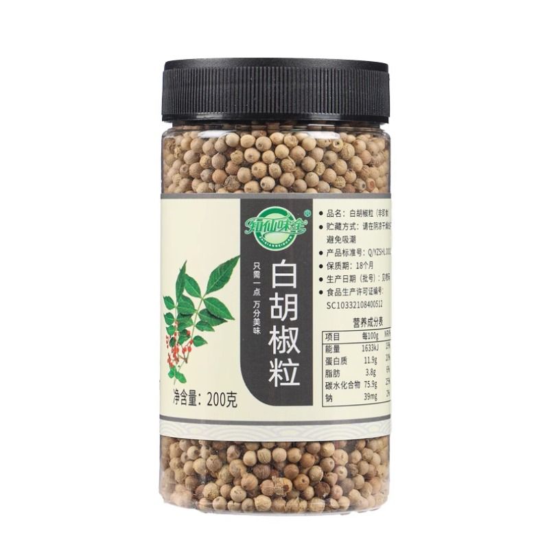 知仙味全海南纯正白胡椒粒粉手工研磨器罐装家用调味料200g调味品