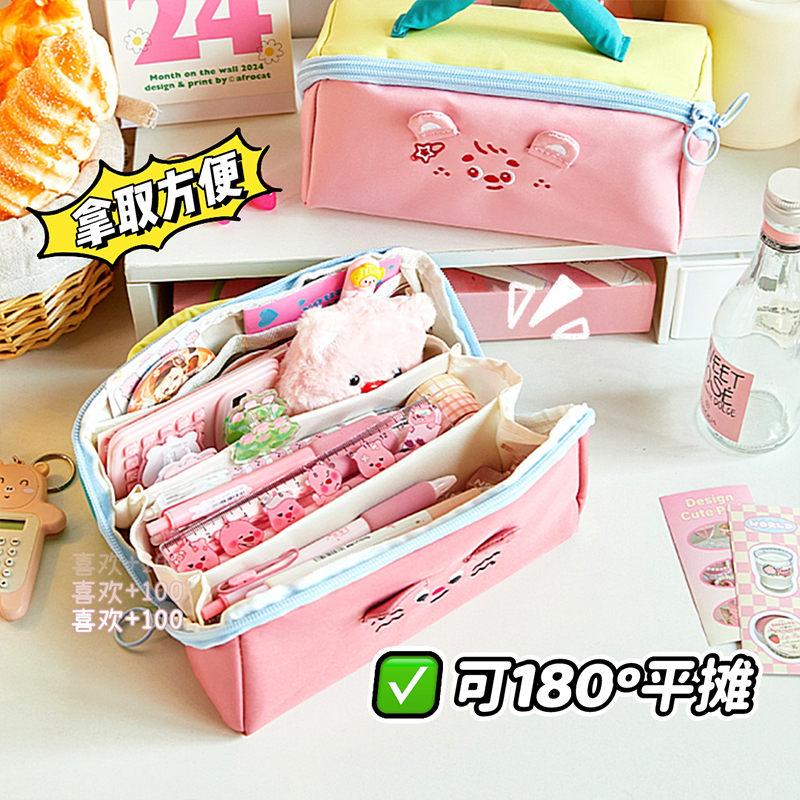 卡通创意撞色帆布笔袋立体可爱女生文具袋高颜值ins风创意个性铅笔袋小众不撞款初中生文具收纳袋多层分隔