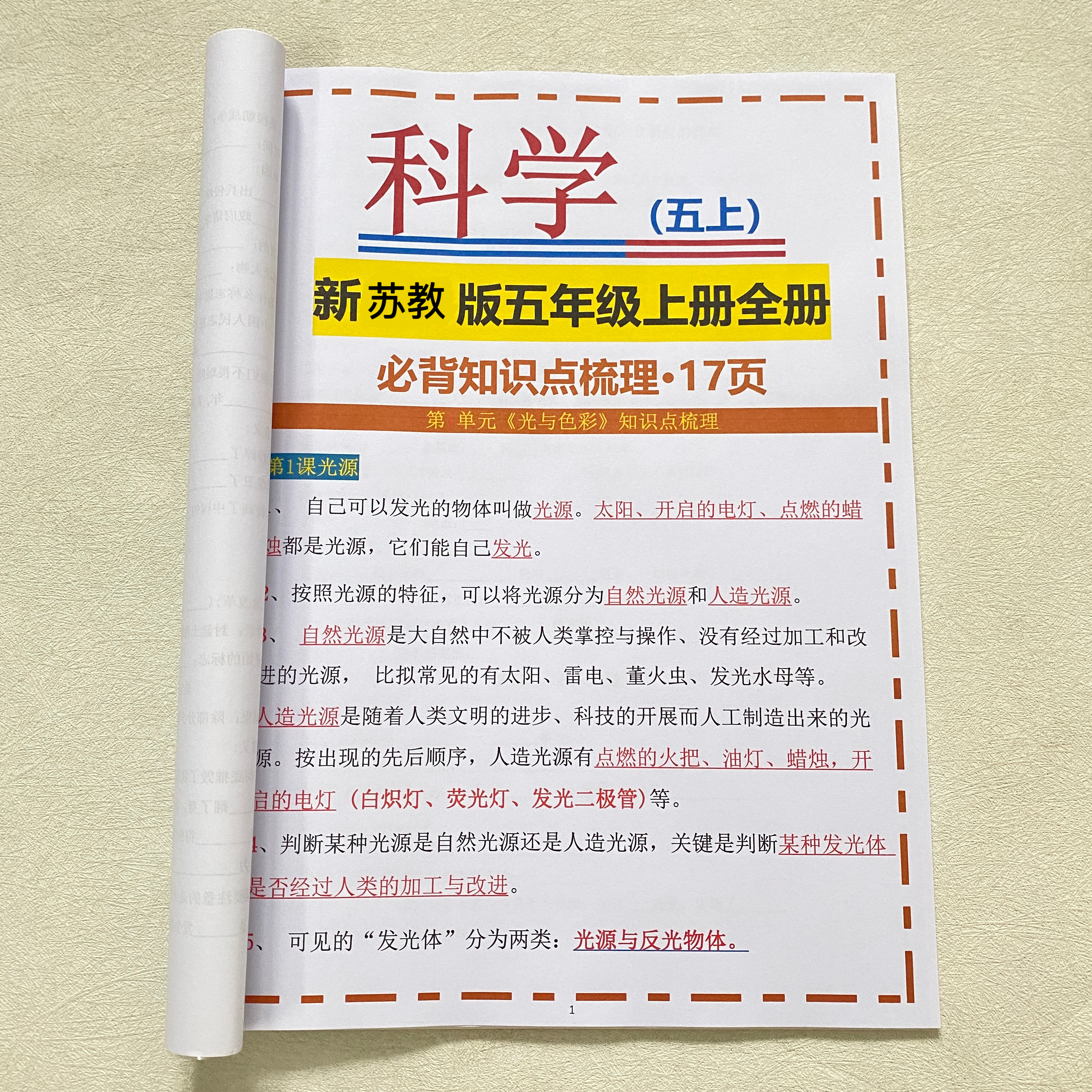 2025年秋季新课标苏教版小学科学三四五六年级必背知识点总结背诵