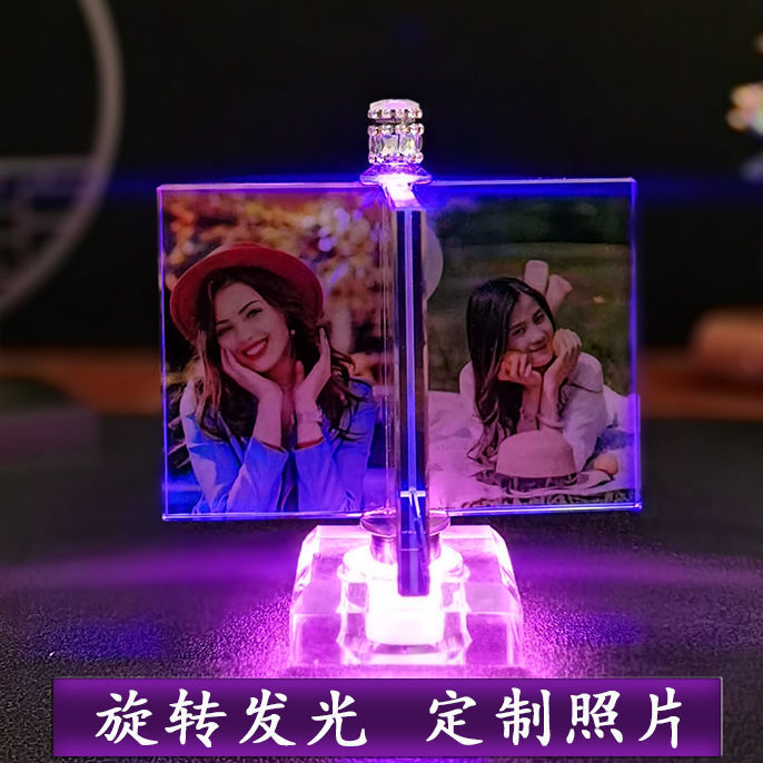 定制旋转手摇相框水晶风车摆台件相册框个性照片diy创意情侣生