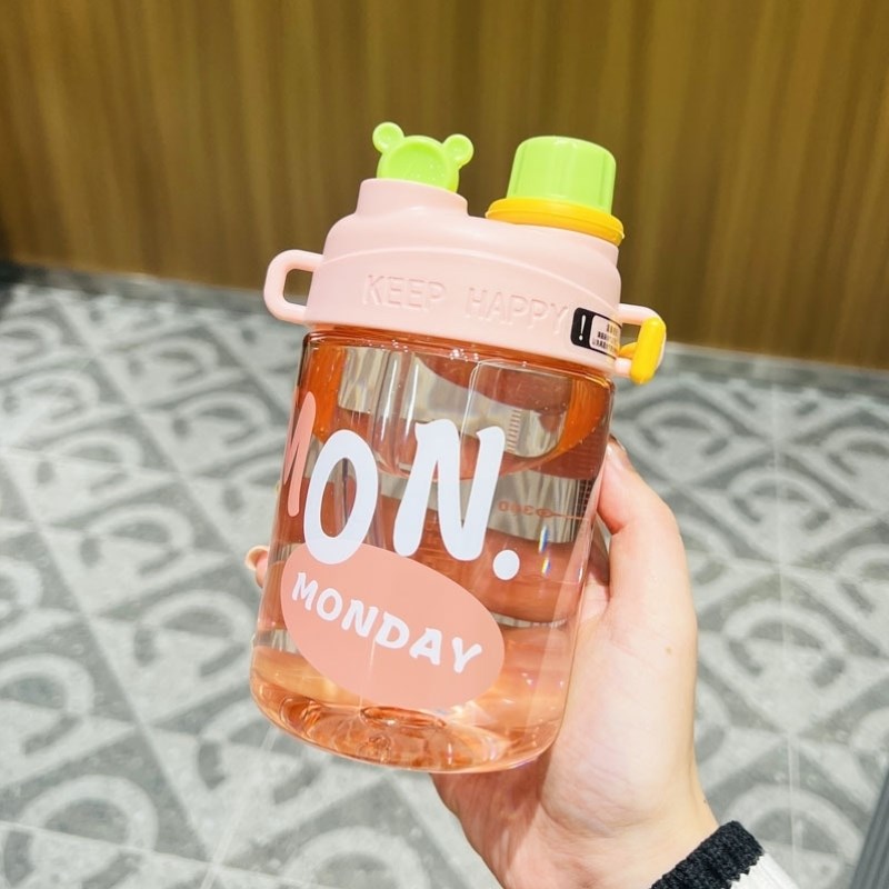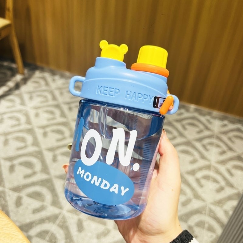 双嘴吸管杯女生夏季水杯儿童可爱便携杯子学生高颜值大人塑料水壶