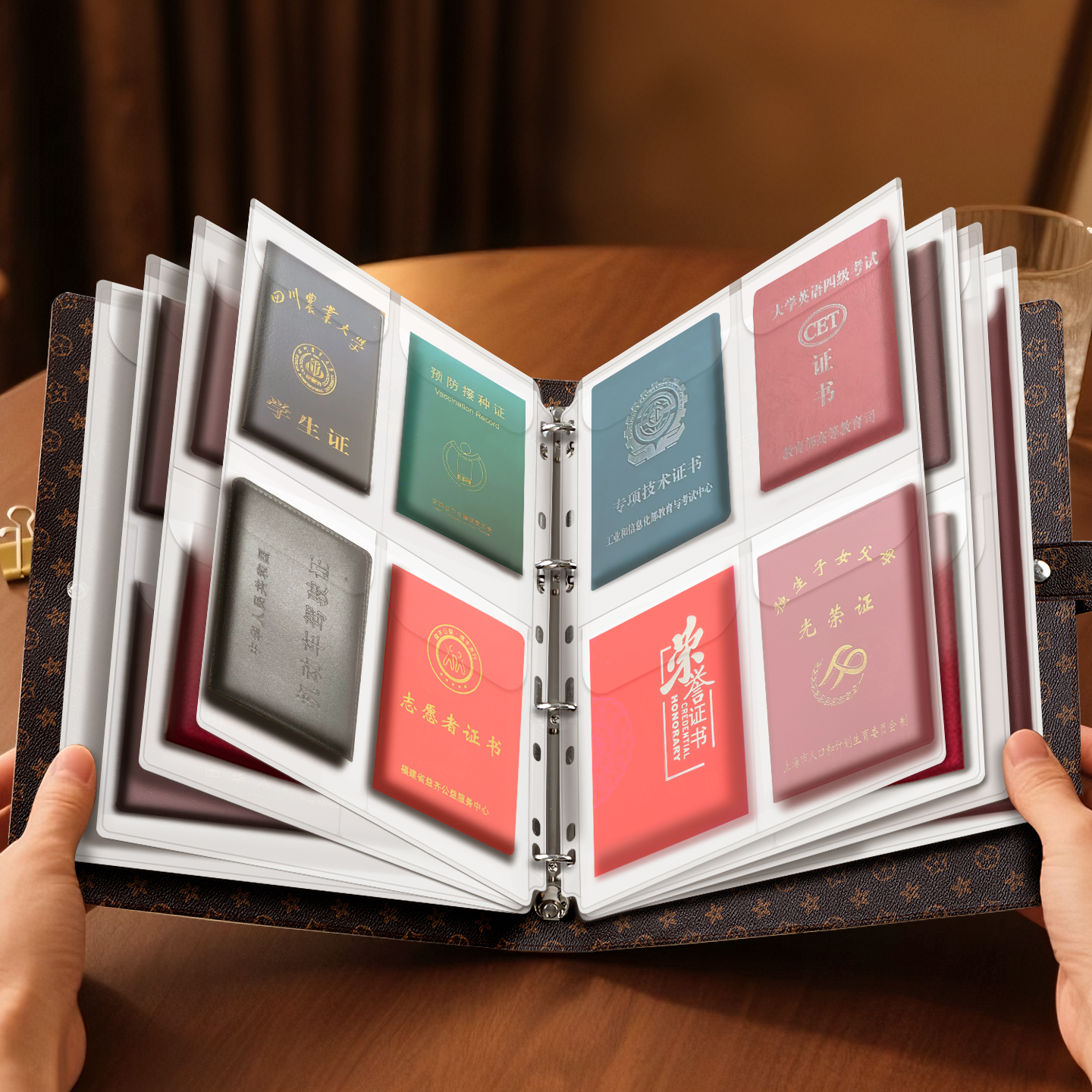 家庭证件收纳册资料活页房本产检收纳册a4证书票据档案册文件夹2025年新款多功能皮质出生证保护套资料册卡包