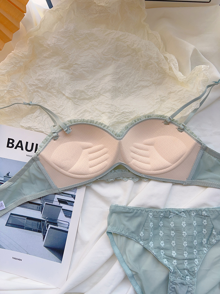 甜心岛屿 无肩带内衣女小胸聚拢上托显大无钢圈蕾丝半杯文胸套装