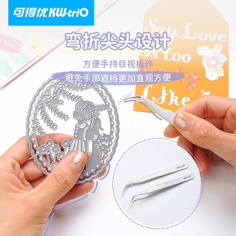 可得优手帐镊子白色手工手帐工具镊子diy贴纸尖弯头手账尖头夹子咕卡夹工具缝纫捏子多肉燕窝细尖小夹子NZ-01