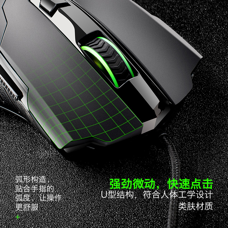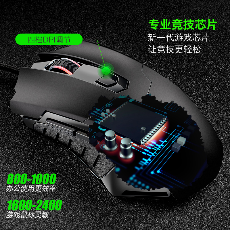 英菲克PW1有线鼠标静音游戏电竞机械宏办公usb台式笔记本电脑专用