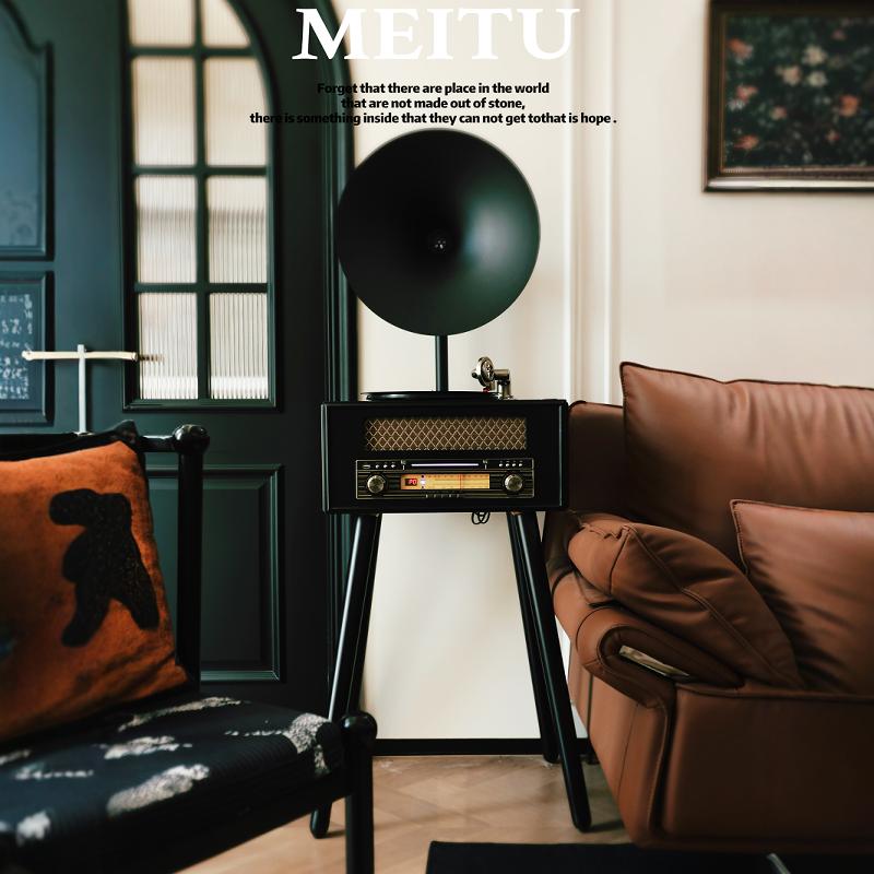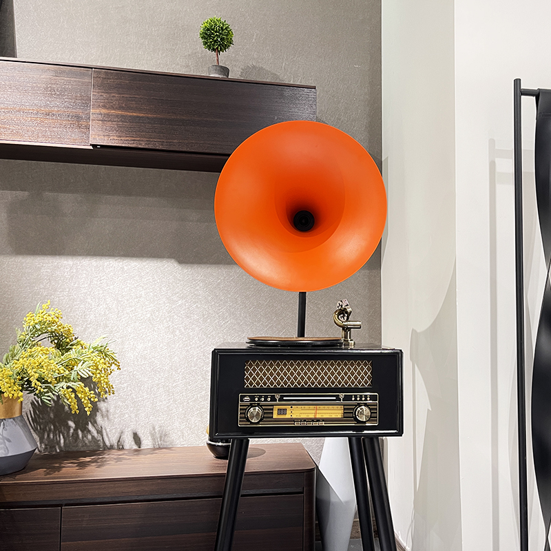 欧蒂诺现代法式欧美式复古留声机电唱机蓝牙音响大喇叭黑胶唱片机