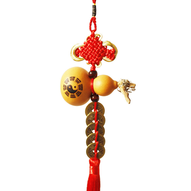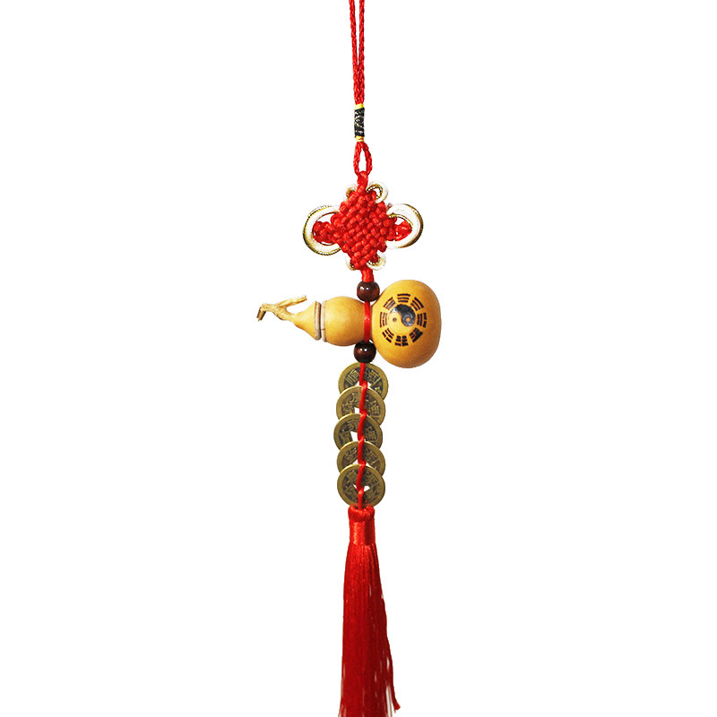 开口葫芦八卦五帝钱红色中国结家居大门客厅汽车室内挂件饰品男女