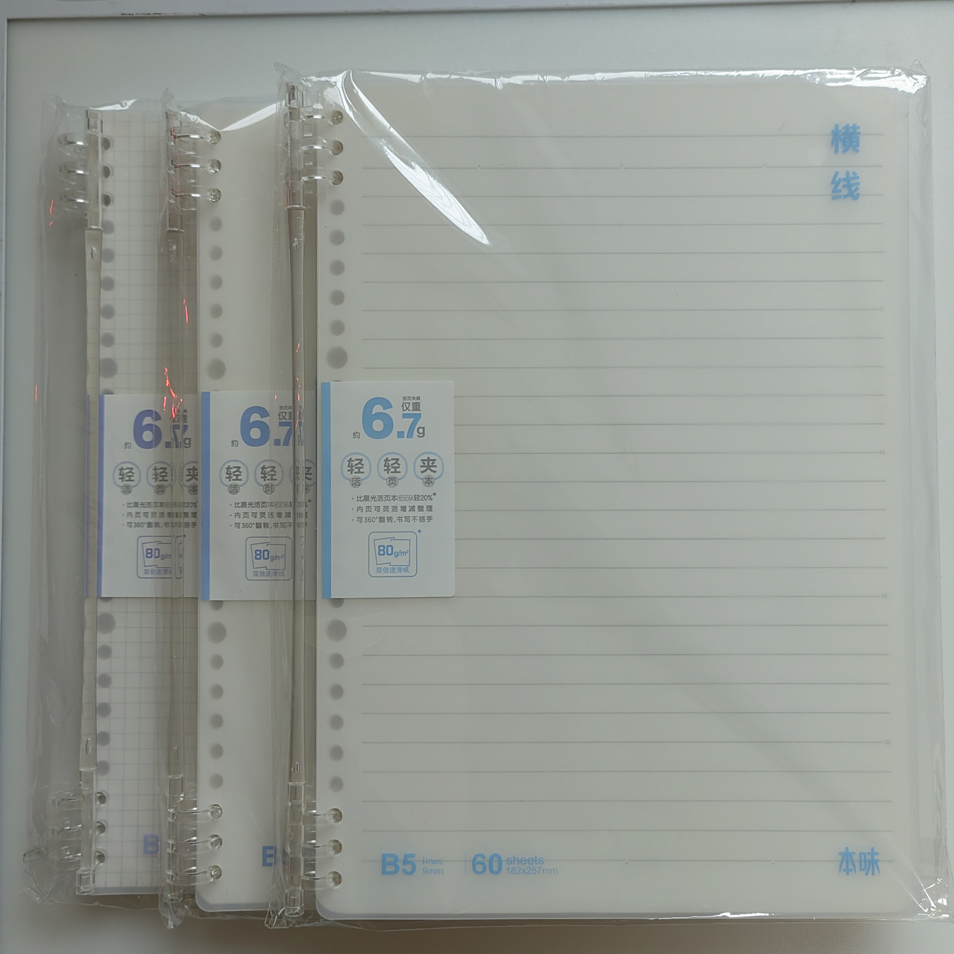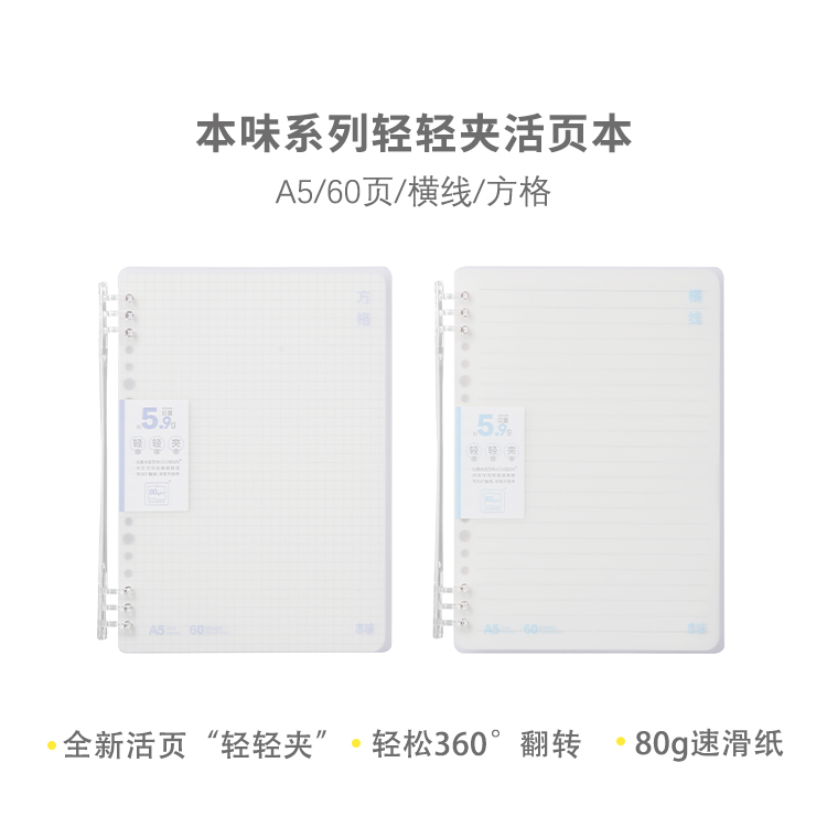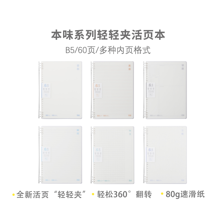 本味B5/A5轻轻夹活页本60页横线方格英语中小学生本册笔记本文具