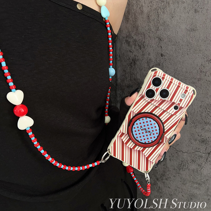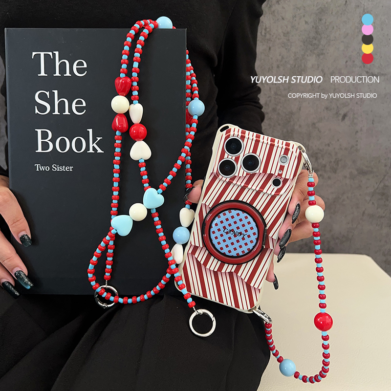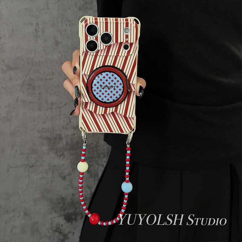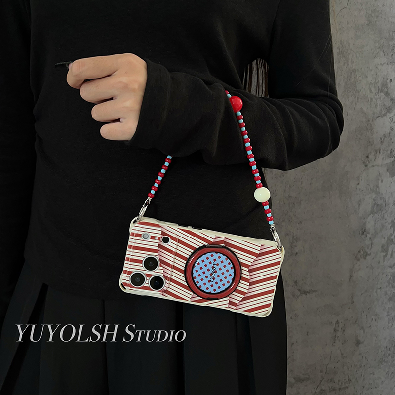 【艺术红格】原创360度旋转支架支点壳适用于苹果17Pro手机壳拼接格纹vivox200背带斜跨华为pura80链条小米15