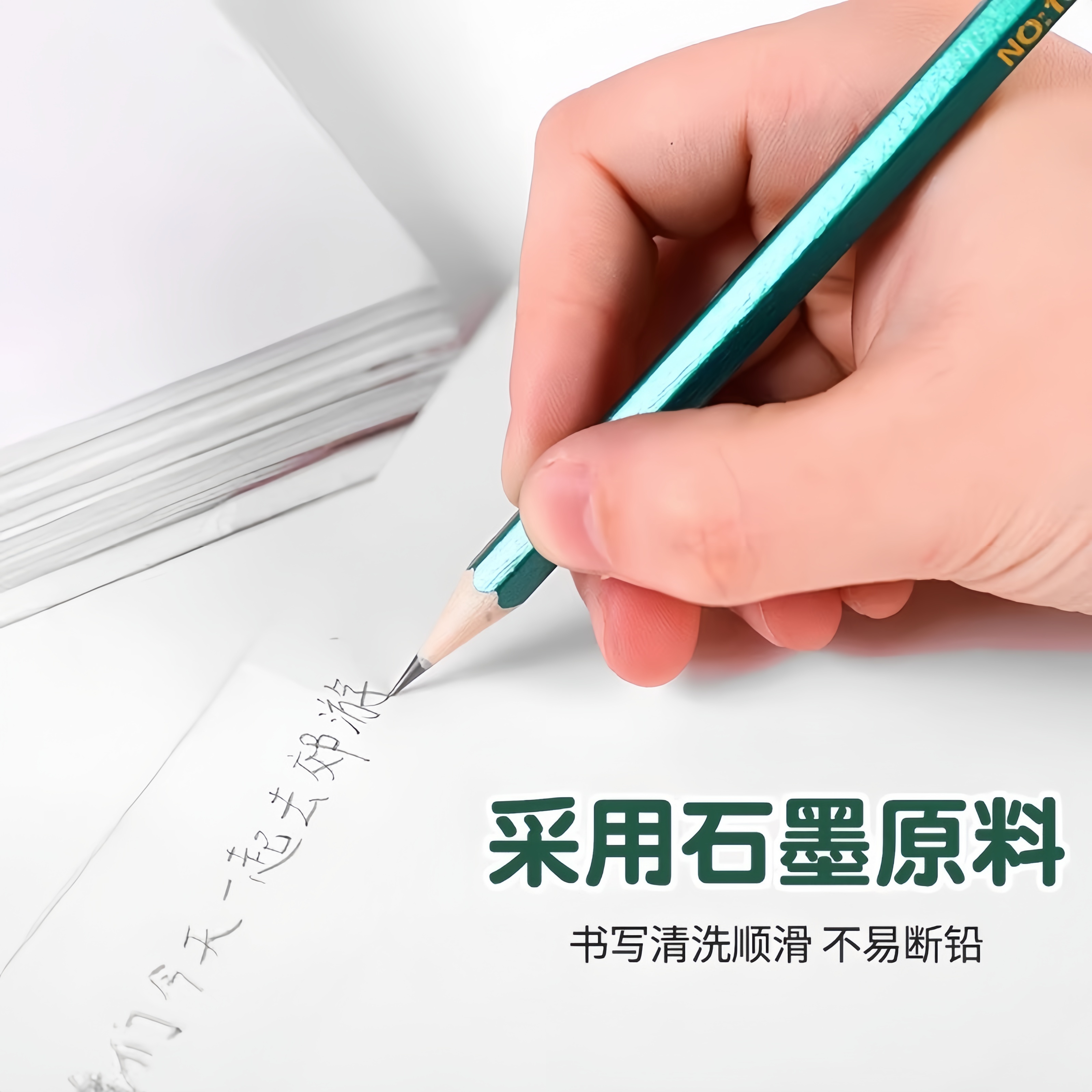 Nusign纽赛小绿杆黑木铅笔hb小学生专用一二年级学习用品正姿高颜值加粗铅芯无铅毒得力书写绘画矫姿素描初学
