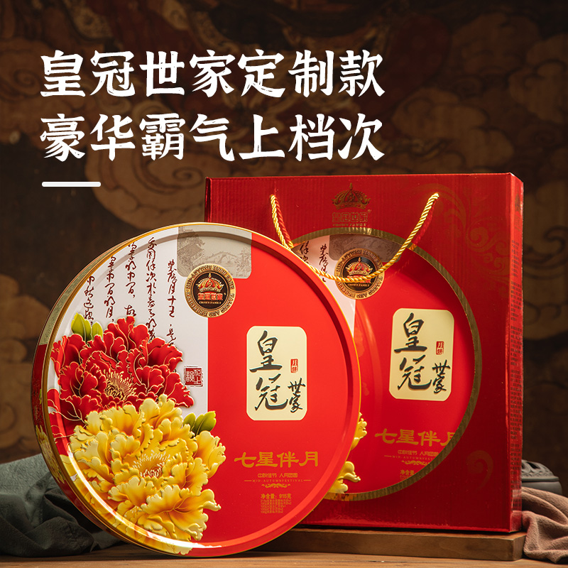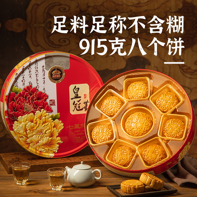 皇冠世家广式双蛋黄白莲蓉味七星伴月月饼高端礼盒装送礼品五仁