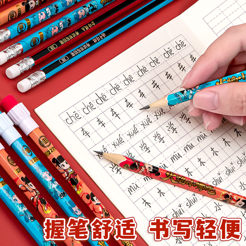 哪咤铅笔2025新款2b考试专用小学生一二三年级hb儿童幼儿园初学者可爱卡通图案哪吒和敖丙2带橡皮头的无铅毒