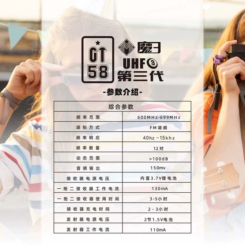 魔三话筒魔方无线话筒舞台演出KTV人声动圈麦克风GT58一拖二