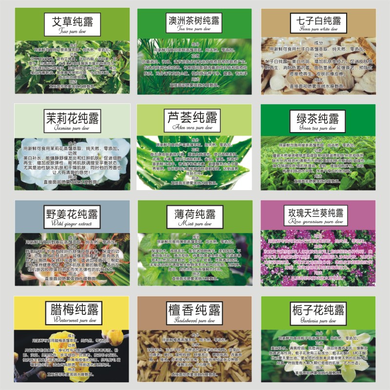 诗束 益母艾香蜂草纯露不干胶标签仙人掌芦荟雪松阿曼绿乳香纯露贴