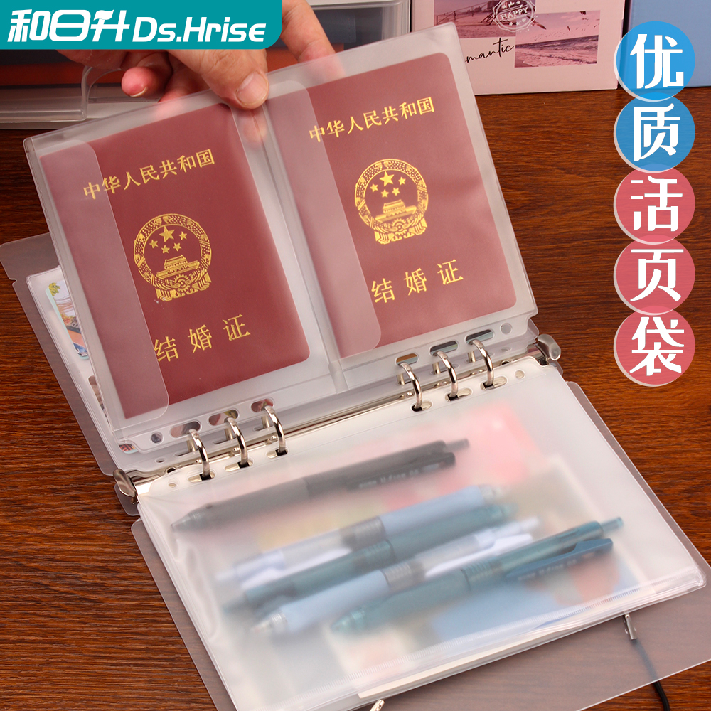 a5活页本活页袋可拆卸套装a6磨砂加厚pvc活页内袋拉边袋柔软防冻卡片相册证件套收纳资料册便携文件归纳整理