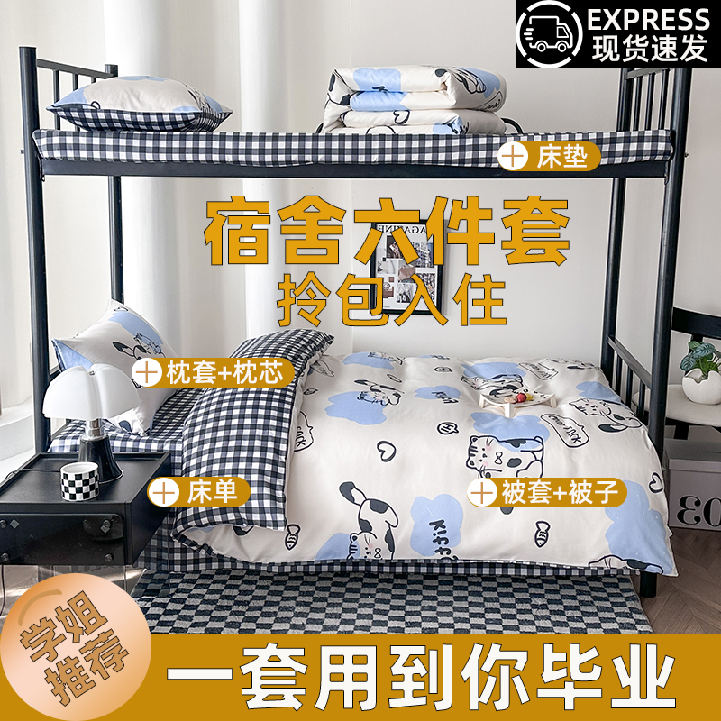 学生宿舍六件套被子全套一整套冬被芯大学生八件套单人床被套床单