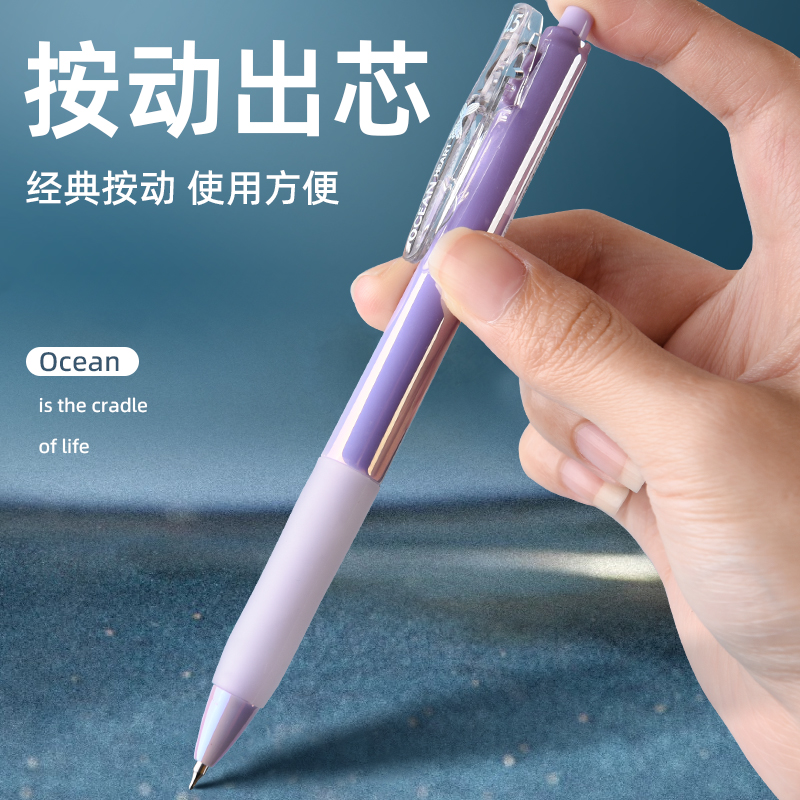 金万年海洋之心镀彩按动中性笔0.5mm速干黑色签字笔炫彩贝壳电镀冷淡风高颜值cs双珠笔头水笔G-13480