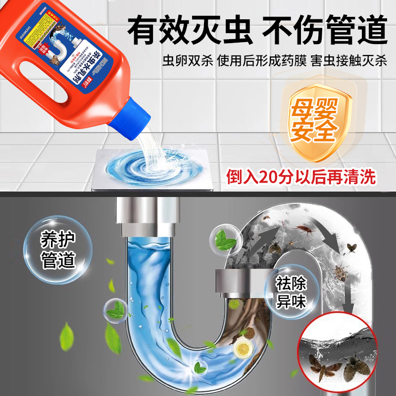 下水道小飞虫灭杀神器杀虫剂蛾蚋管道专用除虫卫生间厕所去除蛾蠓