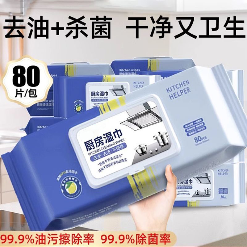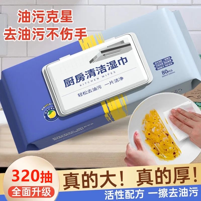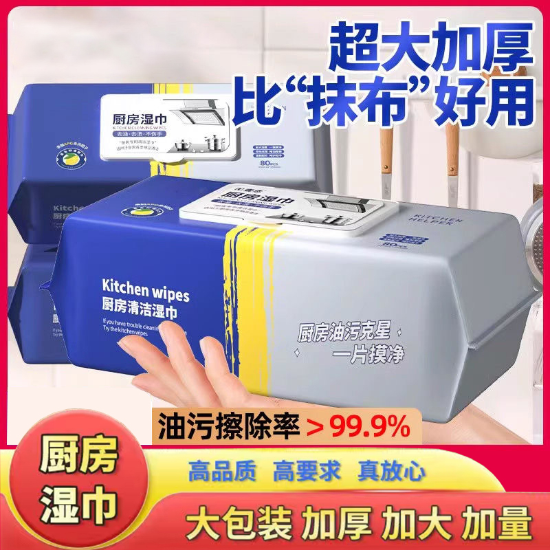 厨房湿巾去污去油家用油烟机清洁强力去油污湿纸巾加大加厚款抹布