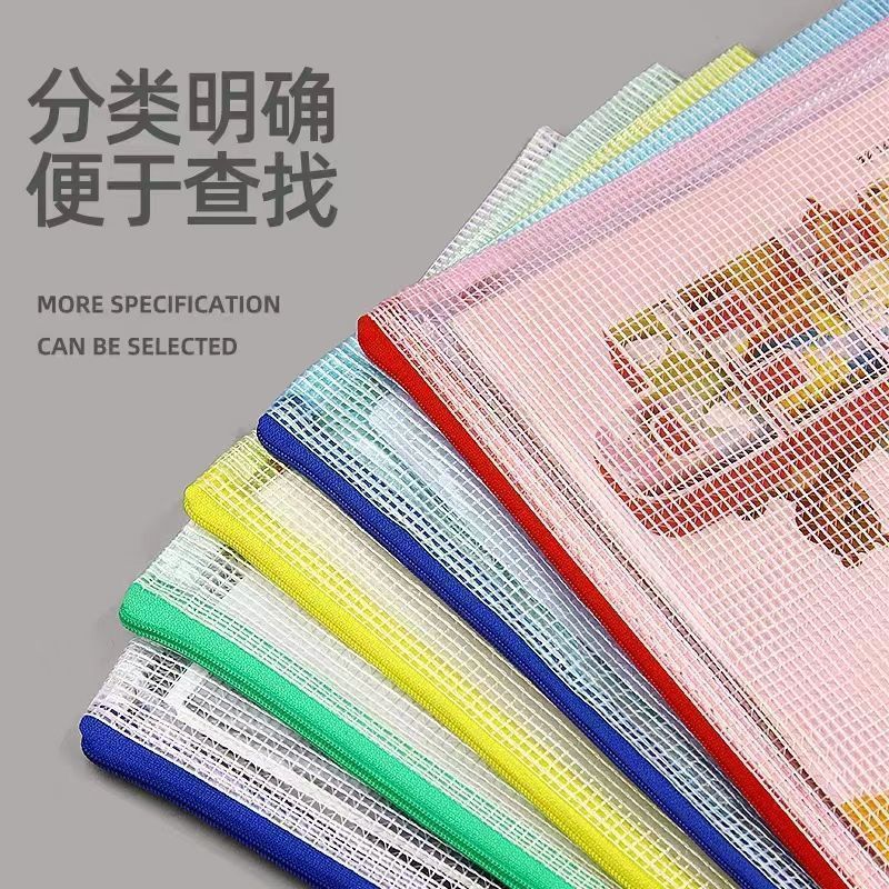 a4透明a5文件袋拉链式网格袋加厚防水学生作业袋a3美术袋小证件试卷收纳档案包大容量资料分类制印logo开学