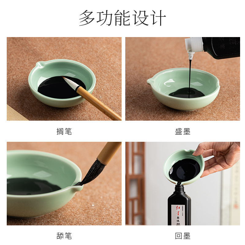 御宝阁陶瓷墨碟蝶小笔搁墨池书法墨汁墨水水碟毛笔架墨盘墨盒笔洗砚台古风多功能笔舔学生初学者文房四宝练字