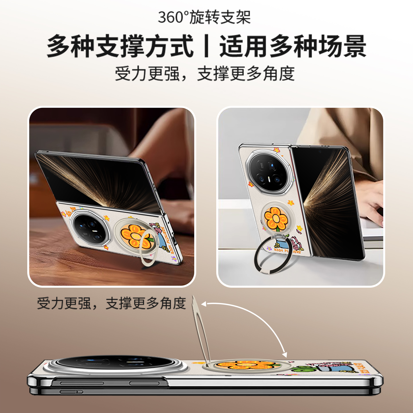 沃艾尼适用荣耀magicv5手机壳新款折叠屏360旋转支架Magic超薄素皮中轴磁吸保护V5全包带挂绳防摔超火有钱花
