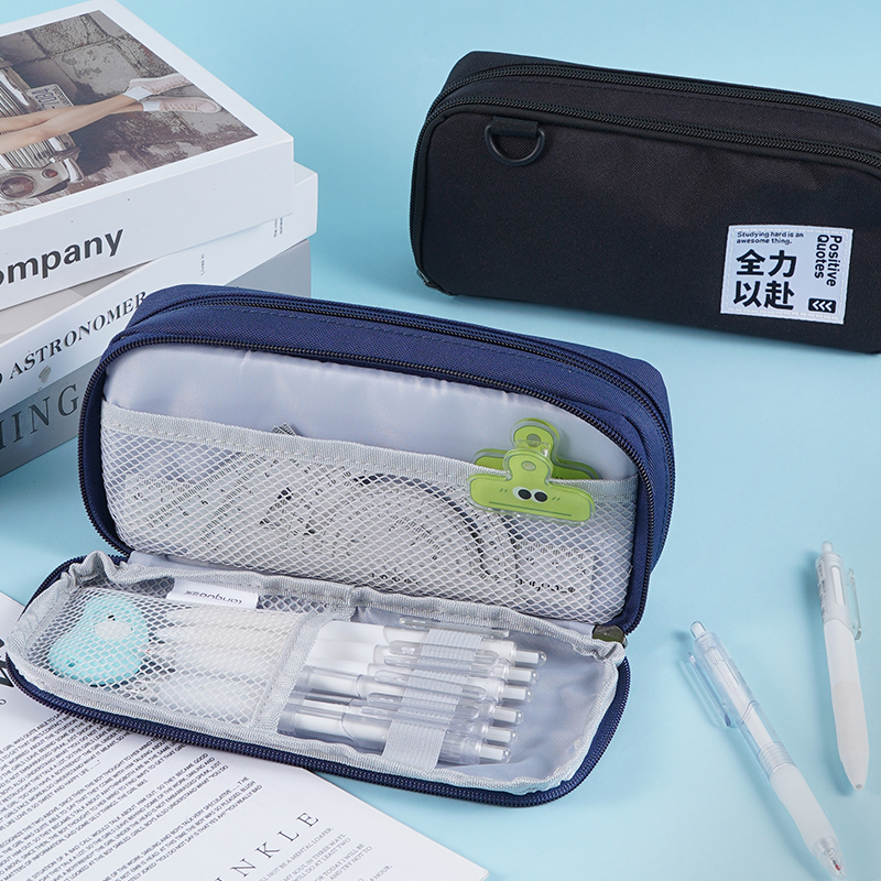 蓝果学霸笔袋2024新款流行多功能四味书屋简约大容量文具盒男孩子高颜值布艺儿童铅笔盒中小学生学习文具袋