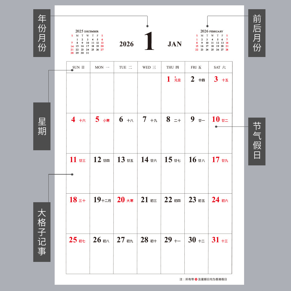 2026年简约大号挂历2025大格子记事月历商务日历本墙历大空间年历