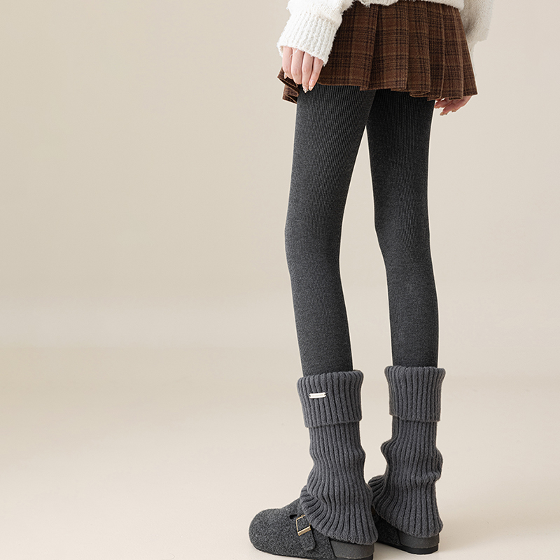 棉伙棉伴灰色连脚裤袜女秋冬外穿黑色踩脚显瘦格雷系提臀打底裤袜