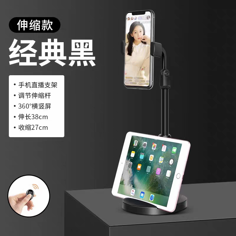 手机拍摄支架直播专用自拍杆三脚架落地式多功能支撑架通用捭机架户外便携伸缩升降网课考研复试架子三角支夹