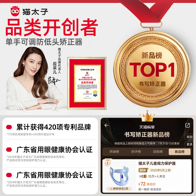 猫太子12°坐姿矫正器儿童写字姿势纠正神器桌面款小学生黄金12度防近视支架写作业学习书写防低头防驼背提醒