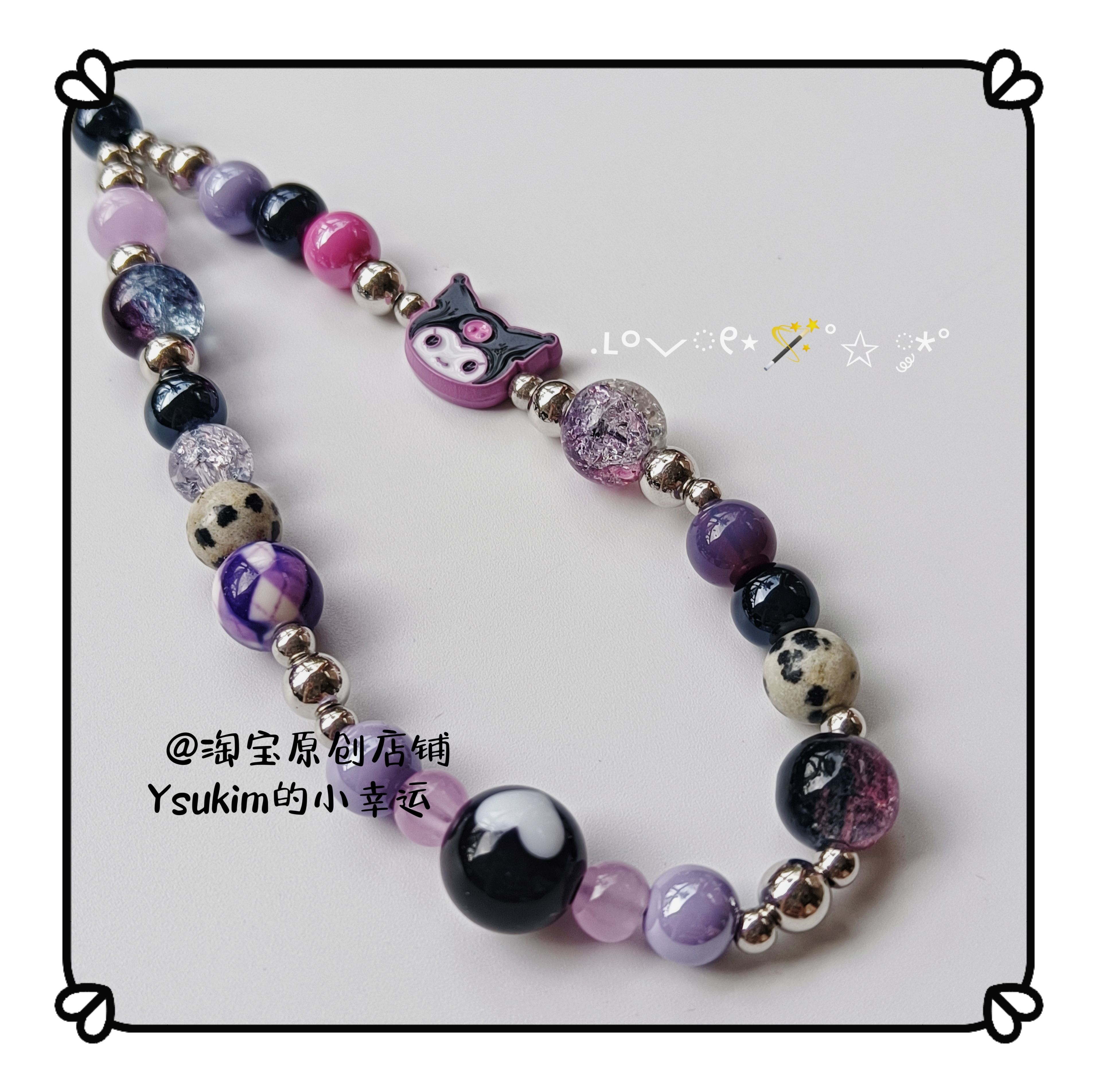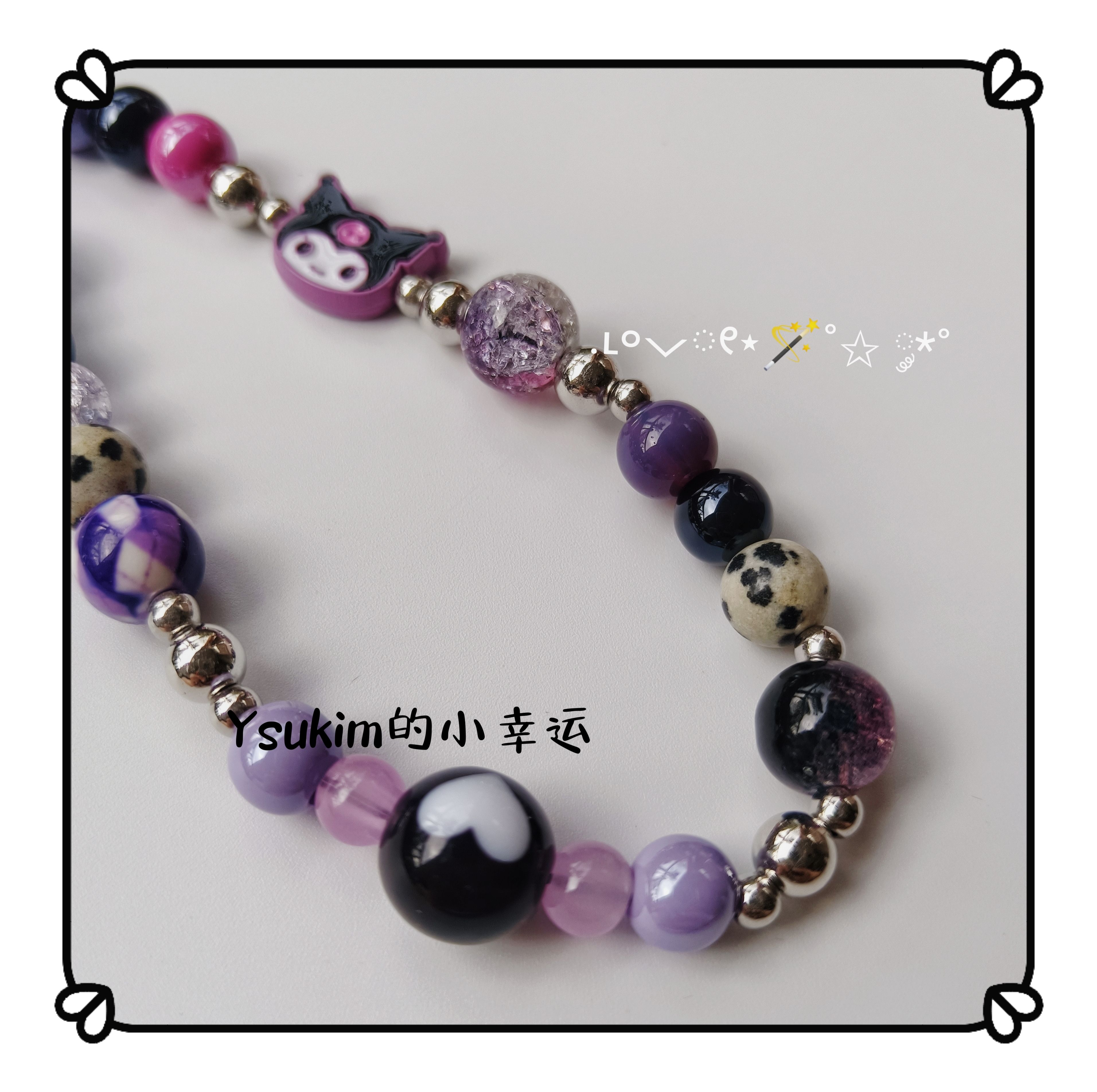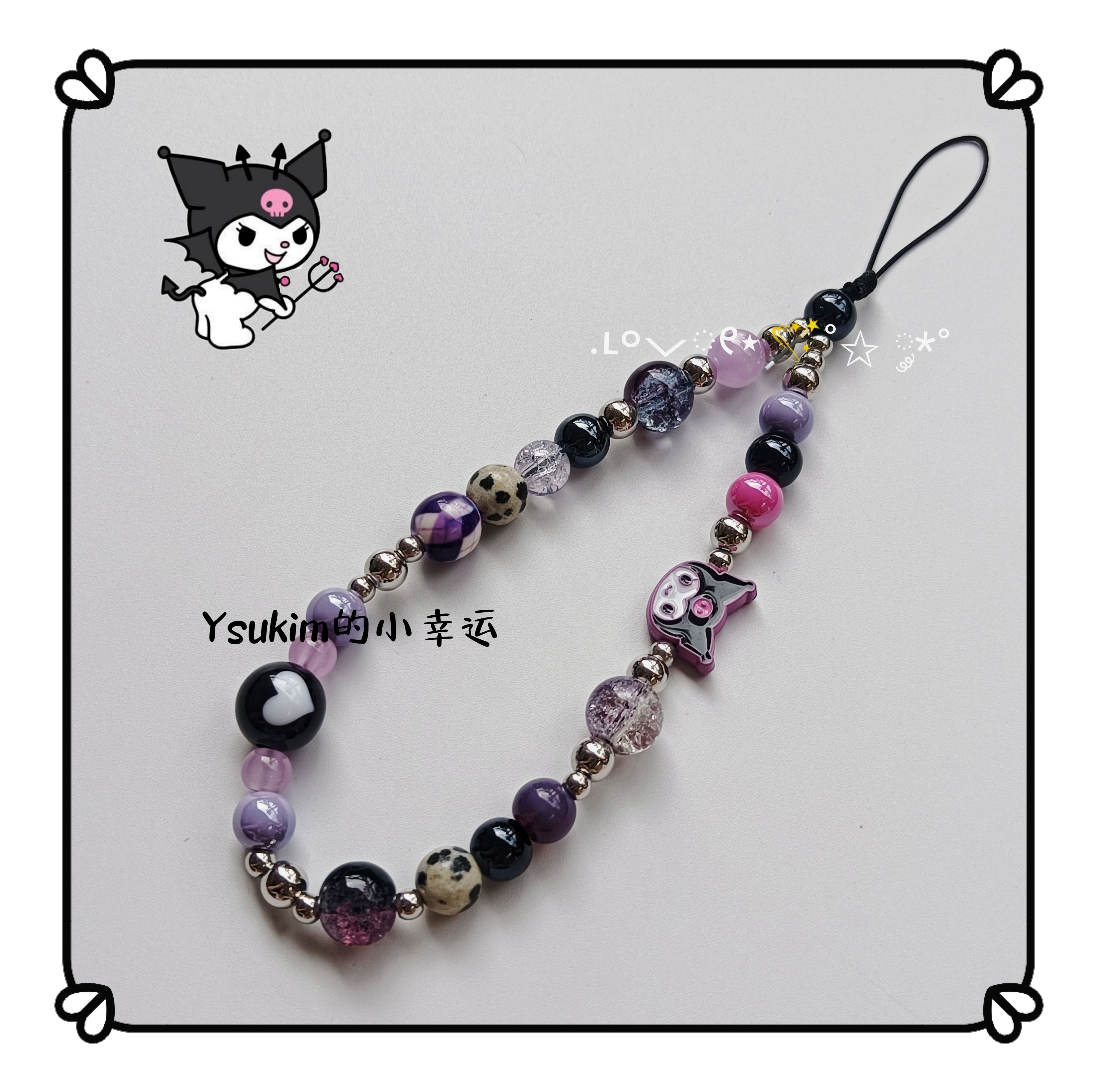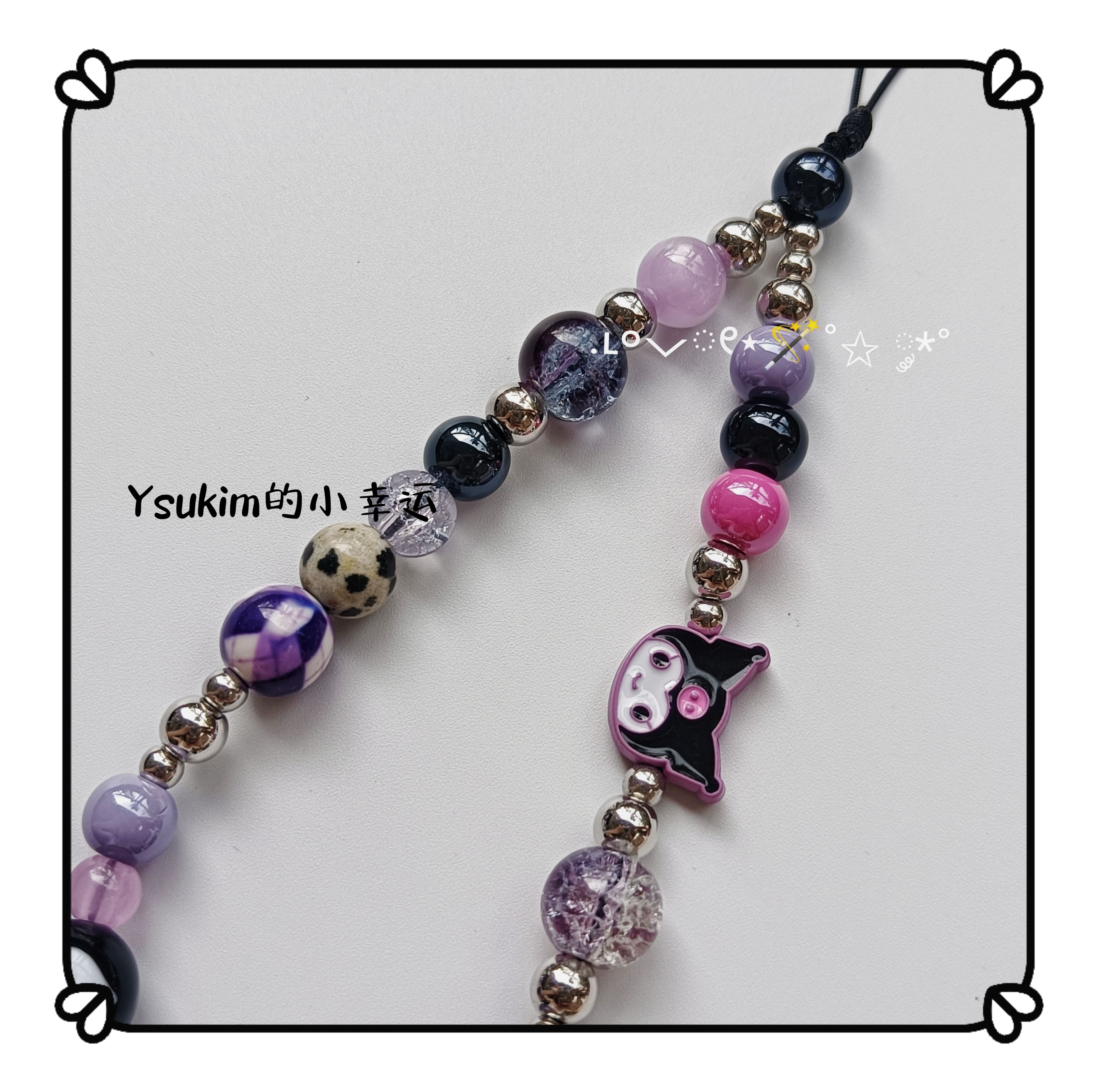【月夏】原创库洛米浅紫色可爱ccd相机挂绳心形串珠手机链手机壳