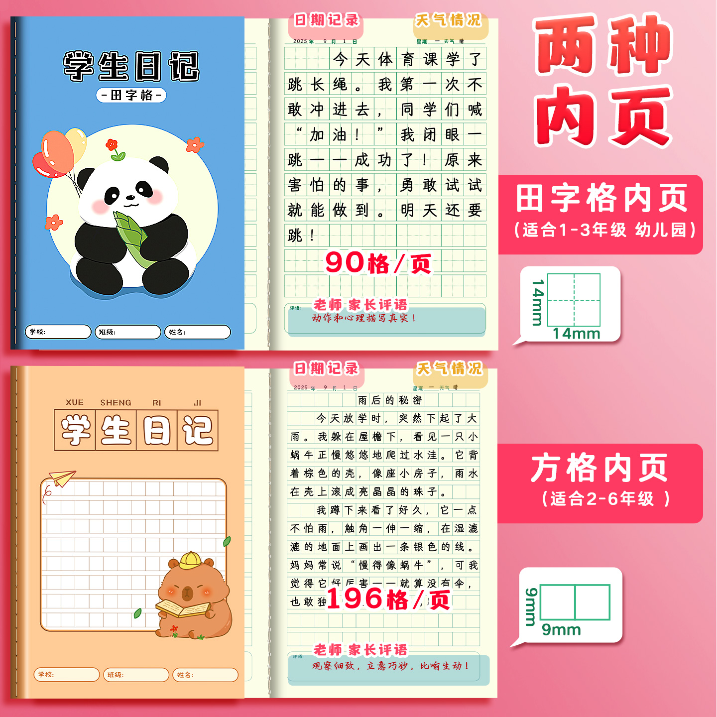 日记本小学生专用儿童一年级二年级四三年级周记本学生日记作文本方格本田字格笔记本本子记事本卡通男孩女生