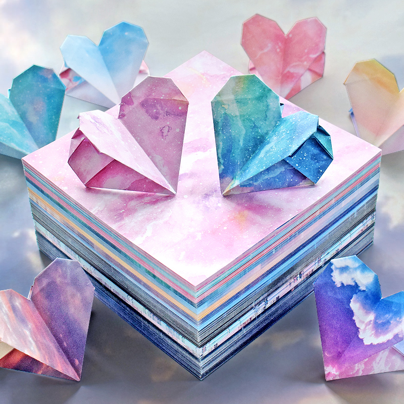 手工多彩星空折纸专用纸樱花雨伞云朵正方形剪纸送儿童双面千纸鹤
