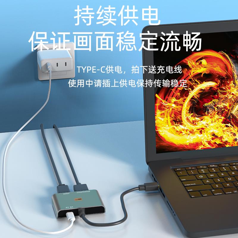 悦智人心迷你dp转HDMI拓展坞分配器扩展坞一分二转换器多屏显示分