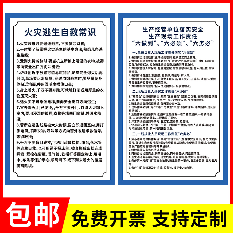 生产经营单位落实安全生产现场工作责任六做到六必须六务必宣传标语标识牌火灾逃生自救常识消防安全提示牌