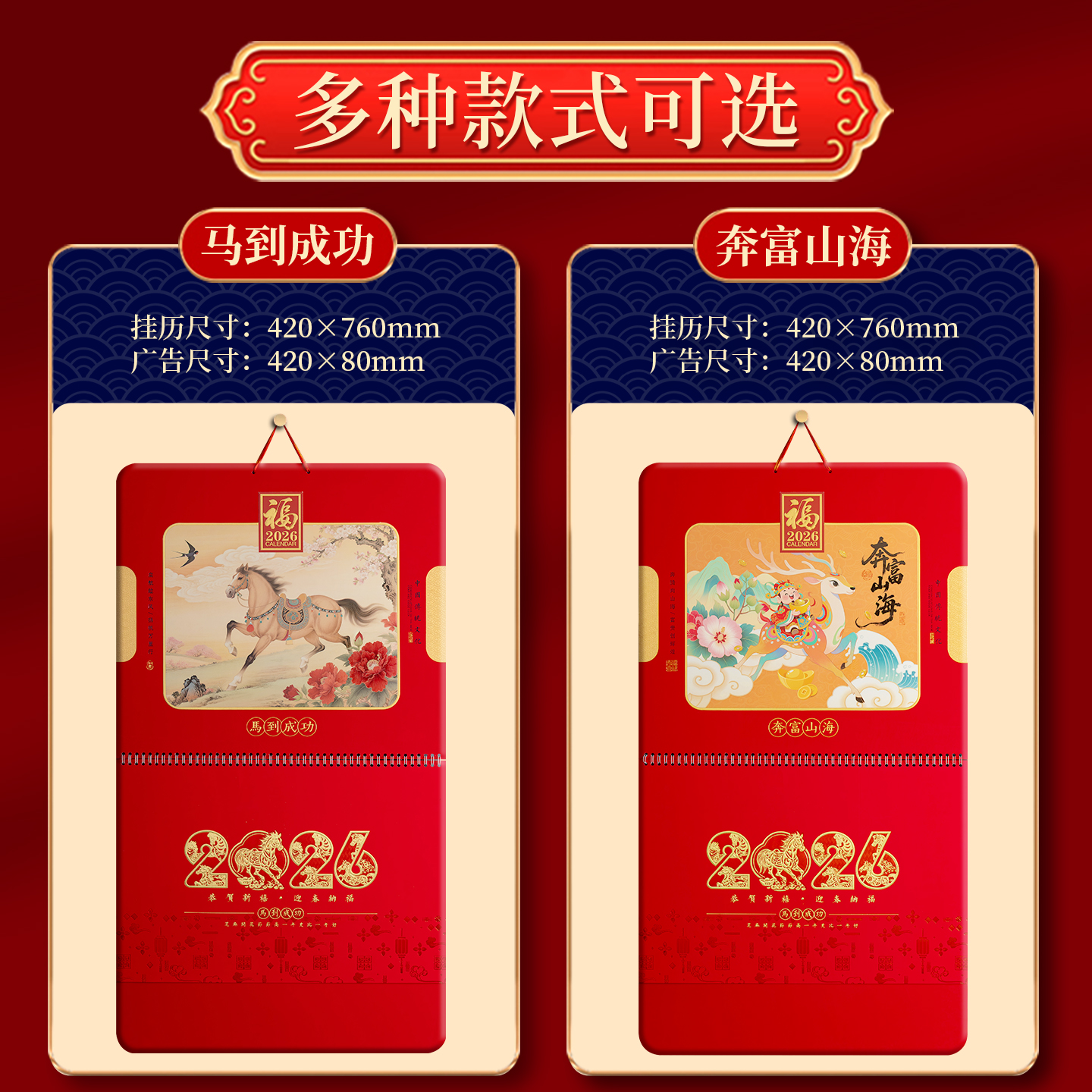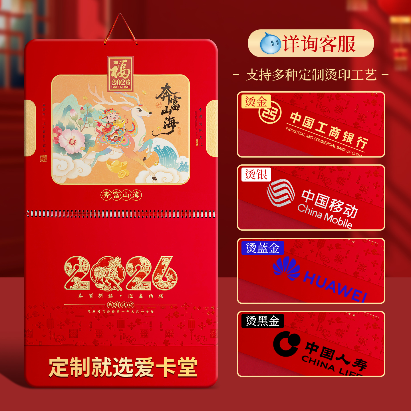 越来越好2026年新款高端挂历定制公司广告LOGO烫金来图定做马年创意中国风月历家用挂墙吊牌日历企业送礼订制