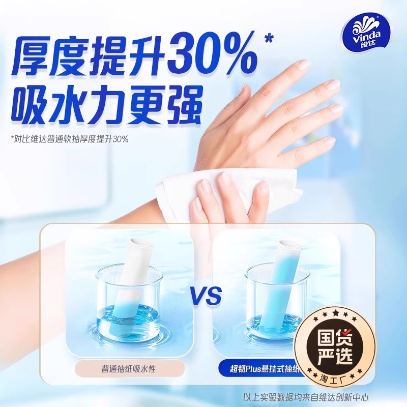 维达超韧悬挂抽纸3层加厚可湿水家用自然无香卫生纸餐巾纸面巾纸