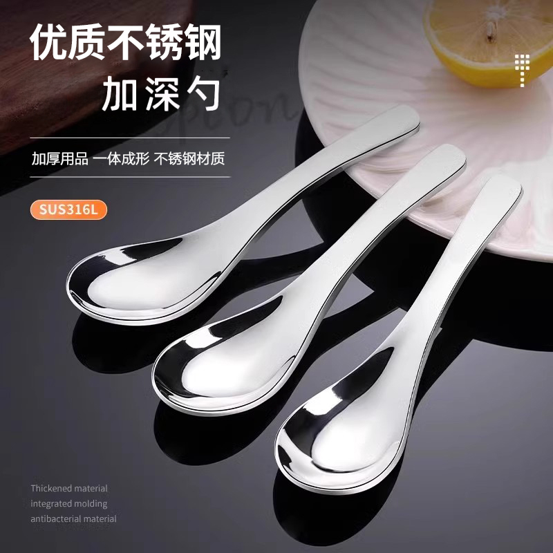 加厚不锈钢食品级汤匙家用儿童成人加深吃饭喝汤大勺子调羹餐饮